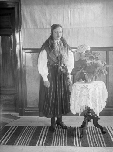 Sökord: porträtt en kvinna, folkdräkt, delsbodräkt, Staket, björk, sjö, hus, vass Motivkategori:landskap, natur Id:711 Fotograf: Karin (Olsson) Johansson troligen Fotoår: Bildnummer: KJR-006 Förening: Delsbo Hembygds- och Fornminnesförening Land: SE Motivplats: Gävleborg, Hudiksvall, Delsbo, Eckelsbo Teknik: 20,0 x 28,0 cm, påsiktsbild, 48-bitars färg, 800 ppi Rättighet: Delsbo Hembygds- och Fornminnesförening Originalplats: (visas ej publikt)