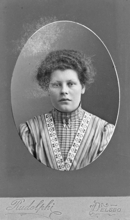 Sökord: porträtt, kvinna, dräktsmycke Motivkategori:Ateljé Id:10770 Fotograf: Rudolphi, Delsbo Fotoår: Bildnummer: OLN-046 Förening: Delsbo Hembygdsförening Land: SE Motivplats: Gävleborg, Hudiksvall, Delsbo Teknik: 5,8 x 10,1 cm, skannad påsiktsbild, 16-bitars gråskala, 600 ppi Rättighet: Delsbo Hembygdsförening Originalplats: (visas ej publikt)