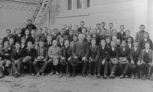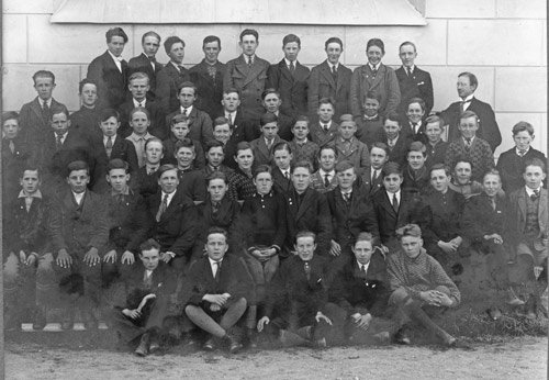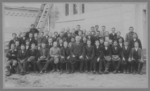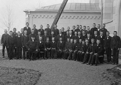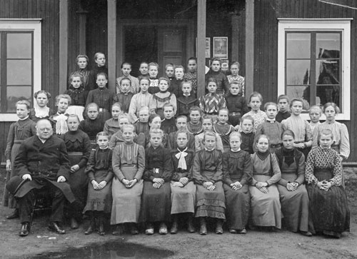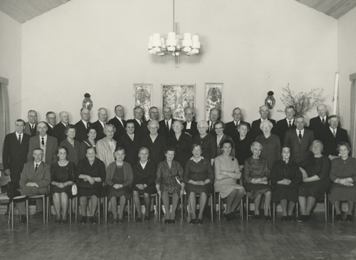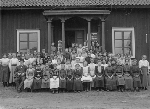 Bildtext: Gåva av Berit Vestgård, Norge. 1917-års konfirmander.//2017-09-04 Dan Andersson: Konfirmandjubileum 1971. Det verkar vara Bror Jonsson som står längst till vänster.//2017-09-12 Vanja Persson: Detta är inte 1917-års konfirmander. Eftersom jubileumsåret skrivs till 1971, är konfirmationsåret troligen 1931. Bror Jonsson var född 1917 och jag tycker mig känna igen Falk-Olle som var född 1916. Deras födelseår stämmer bra på konfirmation 1931.//2017-09-19 Mona Jansson: 50-årsjubileum för 1931-års konfirmander. Min numrering går uppifrån, från vänster till höger: 4."Nybye"Edvin, 8."Falk"Olle Olsson Brännbo, 11.Ragnar Söderlind, 16."Bergar"Erik Näset, 17.Elof Jonsson, 24.Sigrid gift Mårtensson, 32.Bror Jonsson Ede, 37.Ester Sjöblom, 50."Kvôt"Anna gift Persson, 55.Signe Andersson gift Isaksson, 56.Aina Paulsson Backen, 58 Anna liv Näsbyn.//