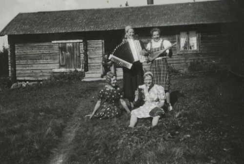 Sökord: fritid, en man, två kvinnor, två barn, timmerstuga, cykel, transportmedel, Motivkategori:ute Id:6462 Fotograf: Fotoår: Säkert 1947 Bildnummer: DAA-118 Förening: Delsbo Hembygdsförening Land: SE Motivplats: Gävleborg, Hudiksvall, Delsbo, Lillvallen Teknik: 8,0 x 5,2 cm, inskannad påsiktsbild, 48-bitars färg, 800 ppi Rättighet: Delsbo Hembygdsförening Originalplats: (visas ej publikt)