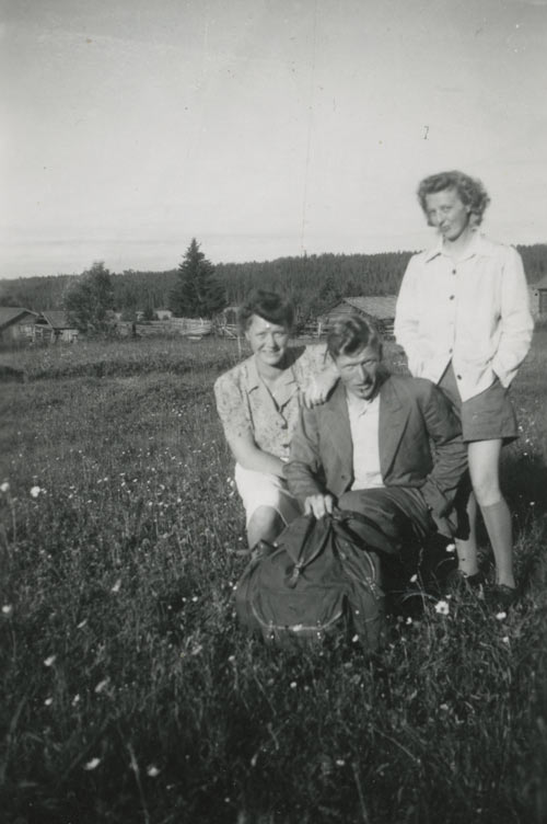 Bildtext: Enl. foto: Eivor Jonsson Rahm, Ingrid Vallin, Lillvallen 1946. Sven kör hästen Putte.