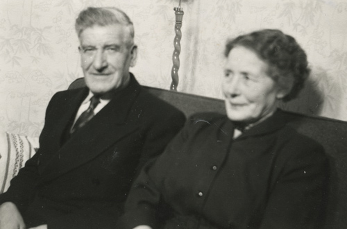 Bildtext: Enl. foto: Från vänster: Ramsen, Pelle, Sigrid, Jonas Brodén, Lars Erik, Svea Andersson, hos Brodéns i Vij