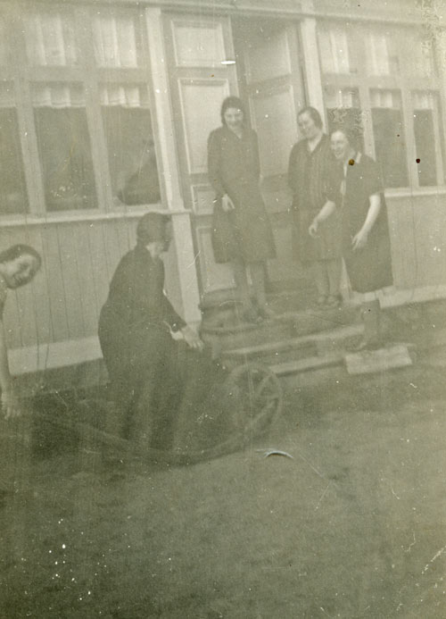Sökord: fritid, händelser, kvinnor, cyklar, packning, cykelkorgar, transportmedel, Motivkategori:ute Id:6702 Fotograf: Fotoår: Säkert 1942 Bildnummer: DAA-211 Förening: Delsbo Hembygdsförening Land: SE Motivplats: Teknik: 7,9 x 5,2 cm, inskannad påsiktsbild, 48-bitars färg, 800 ppi Rättighet: Delsbo Hembygdsförening Originalplats: (visas ej publikt)
