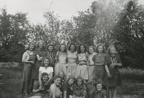 Bildtext: Enl. foto: Beredskapslägret, scout, 1942, Delsbo. Detta foto visar en avresa från Söderhamn, 1942