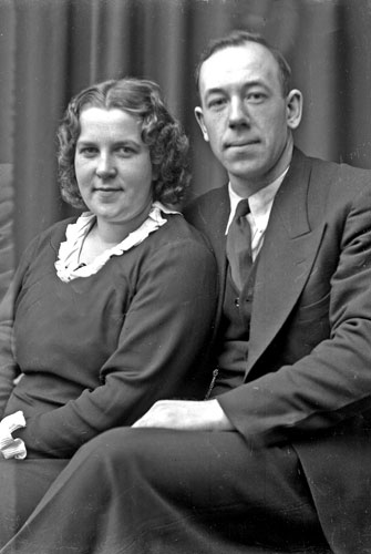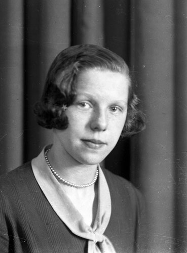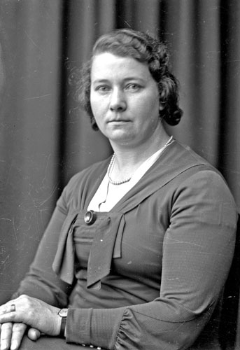 Bildtext: Märta Baggström, född Sjödin, 11-07-1914 - 10-04-2005, gift med Axel Baggström, 13-04-1910 - 19-12-1980. Paret bosatta i Tosäter. Paret fick under 40-talet två söner och en dotter. Märta var dotter till Per Sjödin i Vemora ss 1, 16B11.
