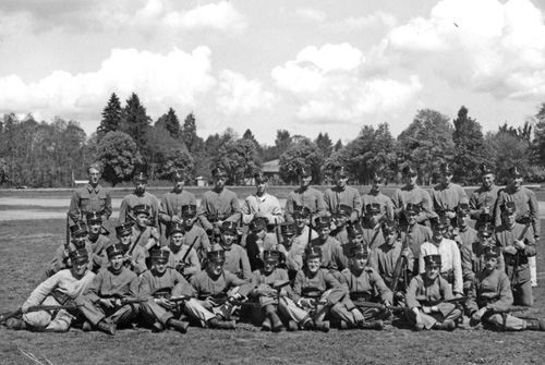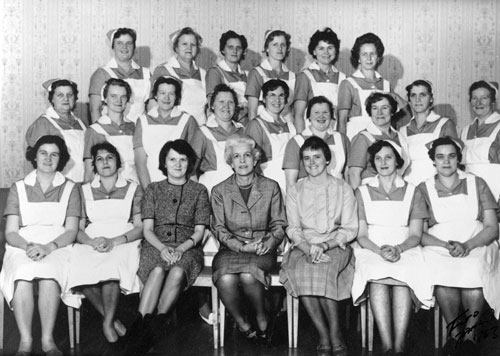 Bildtext: En grupp hemsamariter, de flesta verksamma i Enånger. Följande namn finns antecknade: Sylvia Möller, Ada Jonsson, Ingegerd Wallin, Gunborg Svedlund, Anna Nordin, Elsa Bengtsson, Anna-Britt Brink, Majvor Thelin, Märta Lindfors, Elsa Westling