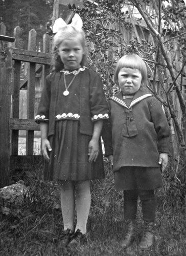 Bildtext: Släktbild: Överst fv: Arne Rosenkvist, Hanna Persson, Erik Asplund, Gunilla Asplund (skymd), Sigrid Asplund, Vivan Eriksson, Britta Persson, Ingrid Pettersson, Märta Svensson, Greta Persson, Jonas Svensson. Barnen främre rad fv: Mats Persson, framför honom Mariann eller Eva Persson, Bengt Olov Persson, Ann-Sofi Rosenkvist, Birgitta (Persson) Olsson, Ingrid Svensson, Sven-Åke Svensson, Elisabeth Rosenkvist, Karin Rosenkvist, Kristina Asplund, ev Eva Persson. En inkommen bildsynpunkt kompletterar uppgifterna om bilden: Personen framför Mats Persson är hans lillasyster Marianne f 1963. Till vänster om Åke Svensson står Kristina Asplund (eller ev Eva Person), båda kusinerna är födda 1962. Längst fram (ytterst till hö)och yngst står Ingrid Svensson född 1964. Bilden togs sommaren 1966 då Greta Persson, New York, var på Sverigebesök och höll kalas i Bäckmora för syskonbarnen.