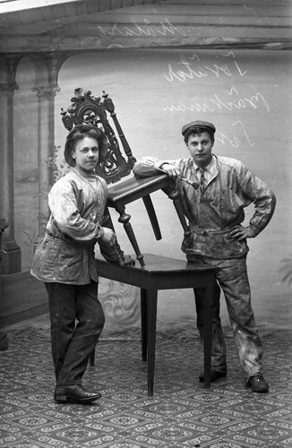 Bildtext: Paret har anknytning till Bölan o kvinnan sannolikt till Gåste. En mer eller mindre kvalificerad gissning är att det rör sig om J. O. & Karin Enqvist med barn i Hökberg. Inkommen bildsynpunkt meddelar: Min farmor Signe (gift Lidén) är flickan på bilden. Hon och hennes bröder var barnkull nr 2 eftersom de 4 första barnen dog.
