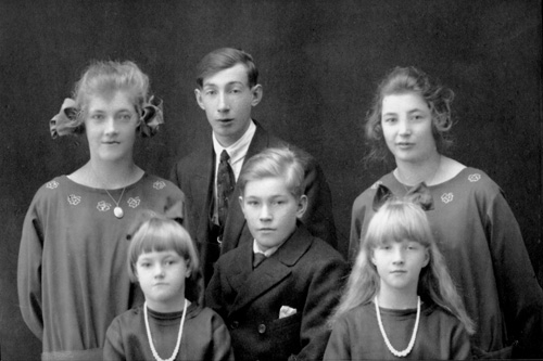 Flickan längst ut till kan vara Ingrid Gustavsson i Norrby, Rössånger. Den vänstra ledaren är Greta Norling som bodde på Våtnäs. Nedanför henne står Ulla Bergqvist. Pojken i hängselbyxor o vit skjorta är Erik Gustavsson ock till vänster om honom hans bror Sven och ovanför Erik står hans syster Elin.Till höger om Erik står Erik Gustavsson (Norrby) och Asta Nordlund. Flickan i långt hår, som står bredvid Greta är Hanna Bergqvist (1910-1970). Hon står bakom sin lillasyster Ulla.