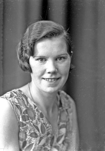 Bildtext: Karin Molin 50 år. Kompletterande bilduppgifter: Karin född 9 sept 1886 i Stugun i Jämtland. Dotter till Johan Jansson och Anna f Enrot. De flyttade till Norrbo 1910.