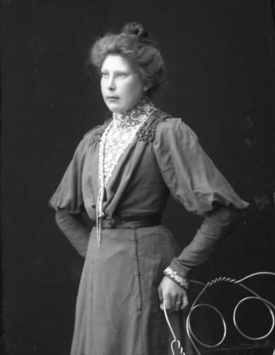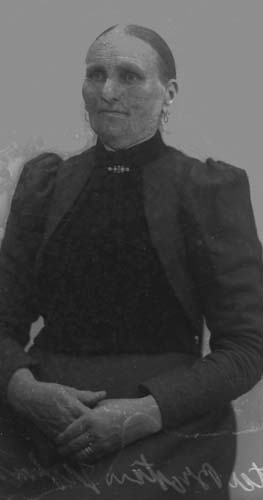 Bildtext: Inga Nordlund, född sept 1890 i Fläcka. Yngsta dotter till Anders Andersson-Nordlund f 1841 och Ingrid f Larsdotter 1848. Gift 1913 med Axel Nordin f 1884 i Hålsänge. (Olstafs! Gårdsnamnet efter Axels morfar Olof Stefansson Hålsänge 3). Inga och Axel fick 9 barn. Ragnar 1913, Anna 1914, Arvid 1915, Ejnar 1917 (död 1917), Karin 1918, Ejnar 1920 *), Selma 1923, Elin 1927 och Ingrid 1931. Mor Inga dog 1934 endast 44 år. Dotter Elin gifte sig med Ingemar Lindblom från Tosätter. De tog över Olstafs på 1950-talet.. x) När den första Ejnar dog 1917 så döpte man nästa son till Ejnar också. Se även bild en-ag-164 med flera