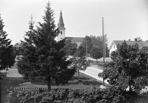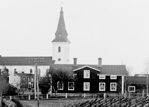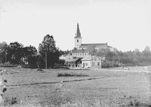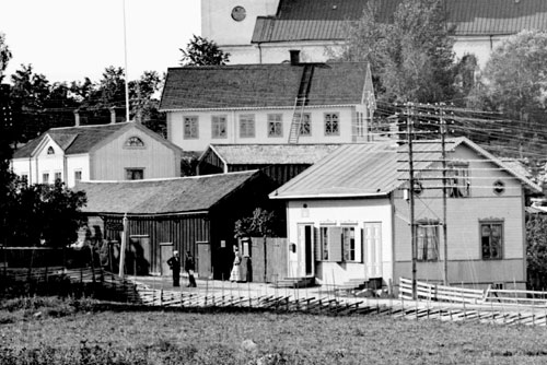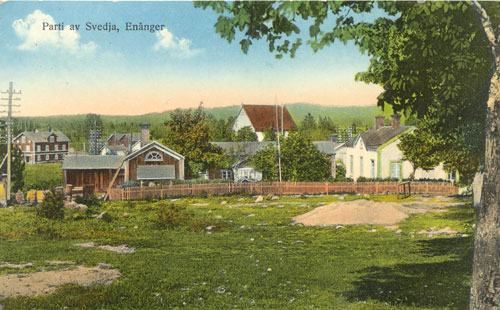 Bildtext: Ledamöter i Enångers kommunalfullmäktige samlade inför årets första möte 1919. Bakre raden f.v: Karl Broberg, Finnika, Algot Johansson, Bro, Olle Lindfors, Borka, Jonas Bergman, Bölan, Leon Östberg, Oppänge, Ernst Eriksson, Brofors, Otto Hendriksson, Bölan, Karl Sundström, Tosätter, Otto Nilsson, Oppänge, Ivar Hultman, Grängsjö. Främre raden från vänster: Per Settlin, Tosätter, Erik Gustavsson, Hålsänge, AW Ståby, Hökberg, LJ Enkvist, Haga, Jonas Andersson, Änga, Adolf Wallström, Fläcka, Anders Andersson, Hökberg, Henrik Winlöv, Bölan, Andreas Åker, Vedmora, Sven Gerdin, Svedja, PA Persson, Ådalen, Svante Svensson, Sätra, OW Enbom, Haga. Bilden fanns publicerad i Hudiksvallstidningen den 30/10 1990, varifrån namnuppgifterna är hämtade. Platsen är gården kallad Björkliden, senare Holms. Byggnaden torde ha inrymt café vid denna tid.