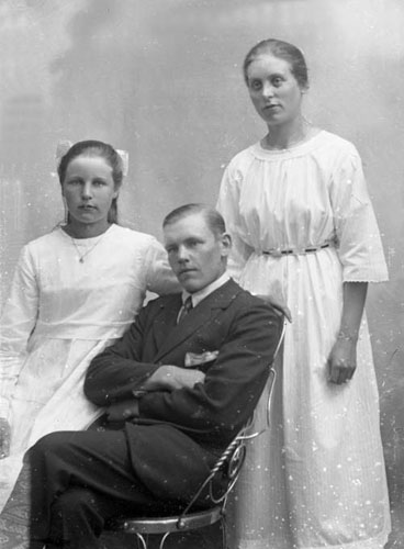 Bildtext: mannen till höger är Anders Svensson. Kvinnan th Anna Svensson, Mekrossla Njutånger, g m Axel Olsson (mannen i mitten). Anders o Anna är syskon