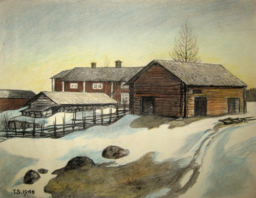 Bildtext: Per Westberg från Boda by, Far till Knut, Ada, Alice,Helmer (född -15, död-25,)Arvid, tvillingarna Johanna(Hanna) o Johan, Einar. Målningen utförd av Palle Åberg (Palle på Lon) från Näsviken