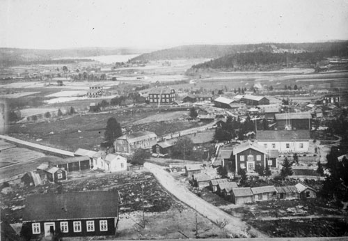 Vy över Enånger sett från kyrktornet (bild före 1904, det år tornet tillbyggdes till prästgården) Troligen ett foto av ett foto. Se även bild en-e-110