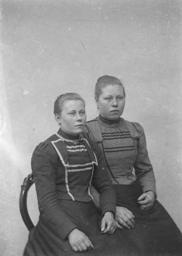 Bildtext: Tekla och Signe Nordin i trädgården, Brunlöfsska gården,