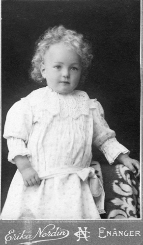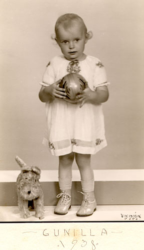 Detta är Gerda och Olof Francks dotter Gunilla, född i maj 1936. Gerda var lärarinna i Hålsänge skola under denna tid. Skolan ligger ett stenkast från Bergmans i Hålsänge.