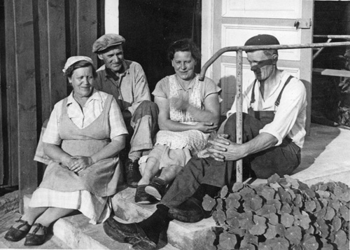 Bildtext: Brita Kjellins 70-årsfirande i Vedmora, Enånger. Främre raden fr.v. Erik Norin, Brita-Stina Norin, okänd, Per Norin, okänd, Sven Kjellin, Olov Kjellin, Brita Kjellin, Erik Norin och Lars Brolin. Andra raden; Bricken Mickelsson, Marta Olsson, Evert Norin(bakom Marta), Sally Norin, okänd, Kristina Frisk, Clara Kjellin, Bricken Andersson, Lars Johan Kjellin, Ingrid Kjellin, Marta Norin, Kristina Svedlund och Lars Erik Svedlund. Tredje raden; Selma Norin, ....? Gustafsson, ....? Gustafsson, August Frisk, okänd, Sven Andersson(med skägg), Anna Andersson och Erik Olof Svedlund. Fjärde raden; okänd, okänd, okänd, okänd, Ida Frisk, Karin Svedlund och okänd.