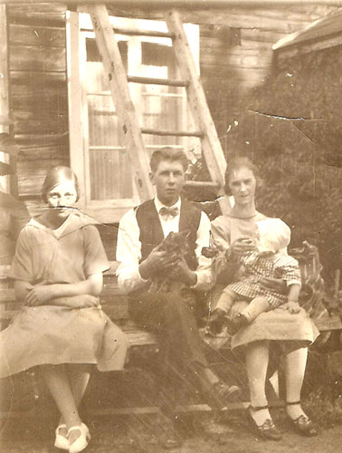 Bildtext: Fiskaren Wilhelm Östberg, Rössånger och hans hustru Margareta längst till vänster. Wilhelm född 1888 och Margareta född 1878, äldsta dotter till "Morsch-Olle". De hade döttrarna Hilma Margareta f 1905 och Olga Katrina f 1911.
