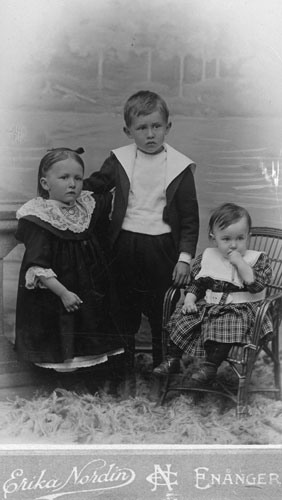 Notering på kortet: Sigge 7 år 1 mån, Gunda 4 år 6 mån, Erland 1 år 4 mån.