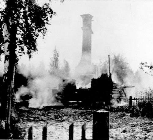 från en eldsvåda i Hålsänge, Inkommen bildsynpunkt hävdar att detta inte är Hålsänge. Vem vet mer besked??