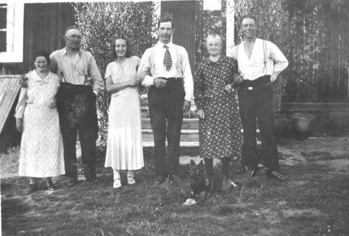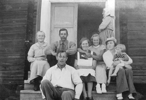 Sökord: gruppfoto, fäbodvall, byggnad, kvinnor, barn, män, utonhusmiljö, vallar Motivkategori:familjebild Id:9033 Fotograf: okänd Fotoår: slutet 1940- talet. Bildnummer: bs-priv-286 Förening: Enångers hembygdsförening Land: Se Motivplats: Gävleborg Enånger Västerockavallen, Tolocka Teknik: inskannat s/v foto Rättighet: privat Originalplats: (visas ej publikt)