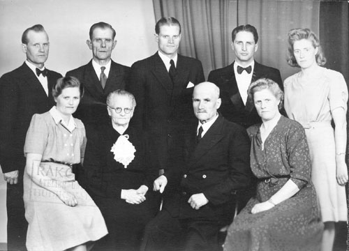 Bilden tagen på Bodins Åkeris årsfest på Flakön, sittande fr v Nisse Svedin, Elin Svedin, Bengt Söderholm, Elsy Bodin, stående Anita Söderholm, Anna Söderholm. Dragspelaren är Alfred Söderholm