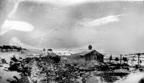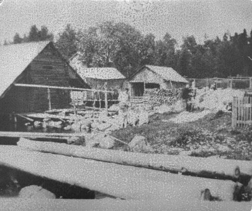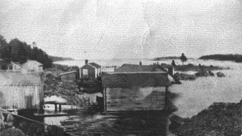 Bildtext: Bilden finns sen tidigare med nummer xx-hbf-17 Bergöns fiskeläge, trappan till Johan Enströms stuga. Överst tv okänd och th Emma Sundin, därefter från vänster, Arvid Enström med sonen Bertil, Alfred Svedlund, Gunborg Svedlund, Florence Wilson USA, troligen brorsdotter till Walter Nilsson, Viktor Sundin, Walter Nilsson från Nilses Staffasberget senare Marmaverken med en dotter i knät. Längst fram, Hedvig Enström med sonen Sture (Uppgifter från Bertil Enström) Personerna på bild har antagligen delvis samröre med bild xx-hbf-57