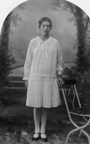 Bildtext: skolklass i Enånger, elever födda omkring 1931. Lärarinna Anna Andersson.