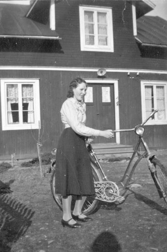 Bildtext: Gården ”Per-Hans” i Tosäter. Framför huset syns Karin Melin med barn och barnbarn. Hållande hästar: till vänster Emil, till höger Wille.