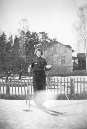 Framför staket från höger (finns synpunkter?): Per Olov, Valter, Gösta, Ester, barn okänt, Alve, Signe?, Anna, okänd, Einar, Olga?, okänd, Karin.