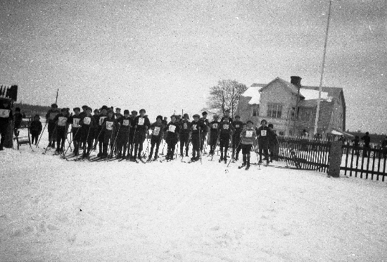 Sökord: sport. skidåkare, skidtävling, byggnad, hus, skola