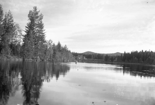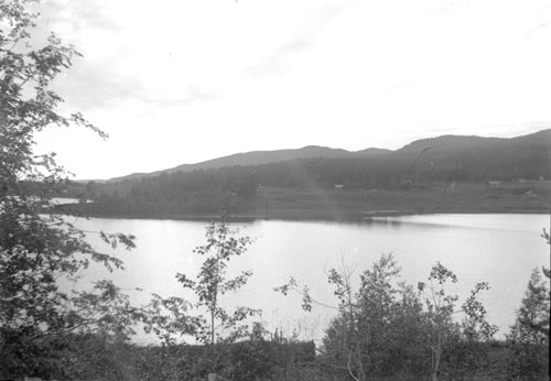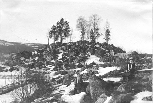 en sten vid sitt hus i Gävlebohamn, Våtnäs. I bakgrunden syns Nordlunds stuga. Vid tiden när fotot togs ägdes Nordlunds stuga av Otto Nordlund. Andreas B. och Ottos pappa var kusiner och således fr. samma släkt i Hålsänge/Våtnäs. Ett