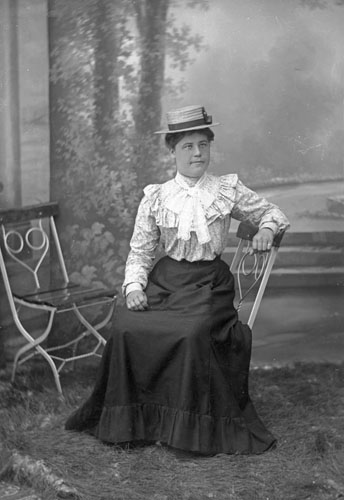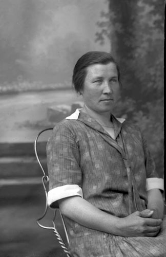 Sökord: Motivkategori:porträtt, kvinna Id:165 Fotograf: Erika Nordin Fotoår: okänt Bildnummer: en-b-17 Förening: Enångers Hembygdsförening Land: SE Motivplats: Gävleborg, Enånger Teknik: inskannad glasplåt 9x12 Rättighet: Enångers hembygdsförening Originalplats: (visas ej publikt)