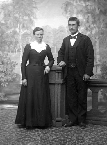 Sökord: man, kvinna Motivkategori:porträtt, par Id:663 Fotograf: Erika Nordin Fotoår: 1900-1910 Bildnummer: en-f-141 Förening: Enångers Hembygdsförening Land: SE Motivplats: Gävleborg, Enånger Teknik: inskannad glasplåt 9x12 Rättighet: Enångers hembygdsförening Originalplats: (visas ej publikt)