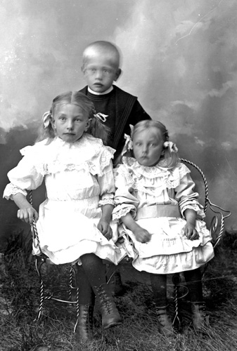 Bildtext: eventuellt syskonen Vanda, Verner och Anna Sättlin