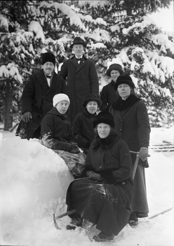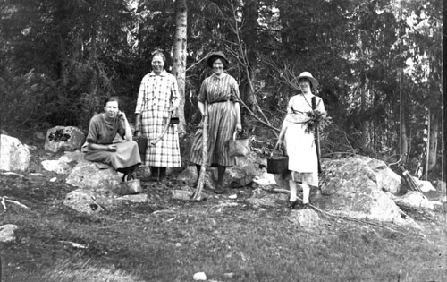 Bildtext: Slöjdundervisning i kyrkskolan Enånger. Överst fv Arvida Enström, Helma Bergström g Svedberg, Klara Svedin, Hetty Fridlund, Tekla Nordin, Margareta Bergström, Margareta Bergström, Anna Enbom, Margareta Bolin. Andra raden: Elvira Nilsson g Ågren, Emma Olsson, Anna Henriksson, lärarinnan Elma Andersson, Hildur Strand, Hilma Burman, Ida Norin. Främre raden: Vanda Sättlin, Ines ?, Signe Nordin, Elsa Bergström g Strandlund
