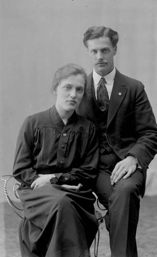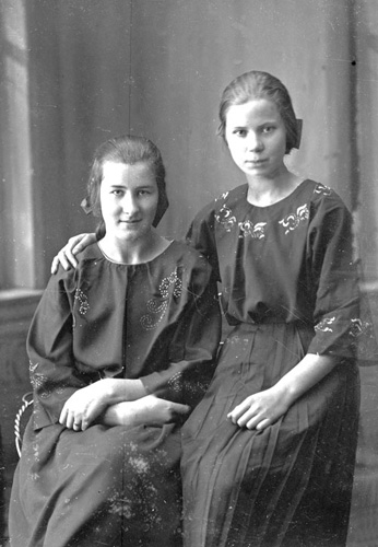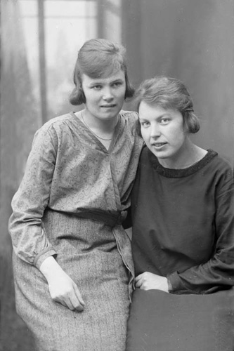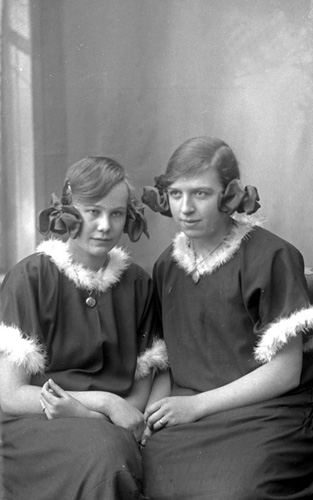 Bildtext: ateljékort på tre kvinnor, i ljus klänning Berna Andersson, Sånkmo, g m Erik Jonsson, Hilda Brolin och okänd. Se även bild en-i-193