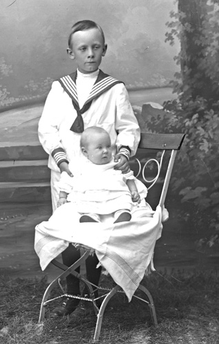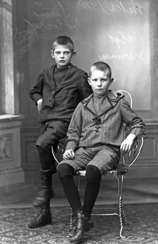 Bildtext: Valdemar och Folke, söner till Ida Gyllander f Burman. Kompletterande bildsynpunkt: Folke Gustaf Mauritz Gyllander f 1914-02-17, d 1977-01-04