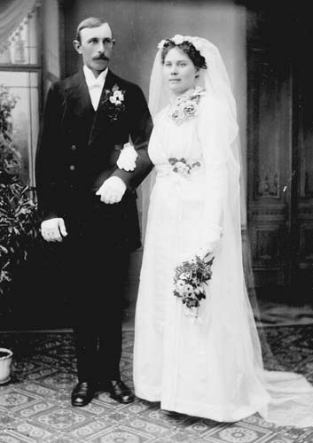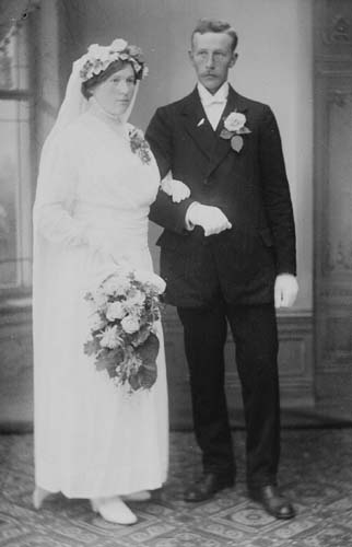 Bildtext: Erik Åkerstam m familj, Bäckmora, omkring år 1910. Erik Eriksson åkerstam *29/6 1866 +31/3 1954. flyttade till Idenor 1913. Helena Eriksson * 28/3 1869 + 23/3 1959. Barnen Erik Einar * 2/6 1893 Jonas Edvard * 8/10 1905 +1959, Olof Gunnar *8/12 1906. Se även bild en-e-163 och en-f-121