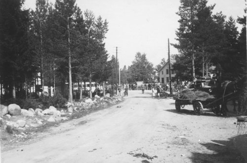 Bildtext: Söderholmarna med dragspel, Alfred, Elof, Ivar. Stående fv: Erik Berg, eventuellt Torsten Svedin, Astrid Eriksson, Gunborg Eriksson, Ada Berg f Westberg, Viktor Sundin, Hedvig Hallberg, Britta Lindblom, eventuellt Leon Östberg. Plats okänd, men bilden kan vara tagen i samband med någon sångförening (motsvarande) och deras turne.