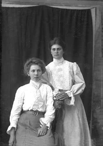 Bildtext: Längst fram sitter Ida Borin, Östby Enånger, född Bergström den 16 jan 1902. Till höger står Signe Nordin, flickan tv är Margareta Bohlin, Kyrkmyra