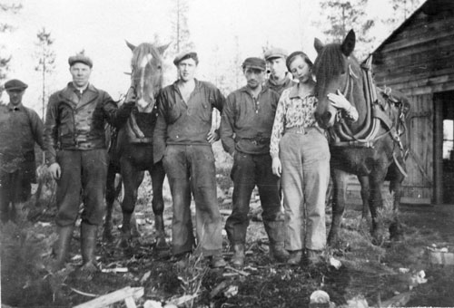 Bildtext: Ungbonde tidigt 1960, som inte blev bonde i Hålsänge. Vy över täkterna mot Långskär. Bergmans dubbel-lada syns tydligt. "Täkta" (täkten) bakom närmsta ladan heter "Kopparsvarn" efter sägnen att där ligger en kopparhäll som föll genom isen vid transport när detta var havsvik. Sägnen besannades när Sture Nordlund från Fläcka "plöjde upp den". Nu finns kopparhällen på Hälsinglands Museum i Hudiksvall. Se även bild nr: jl-priv-87