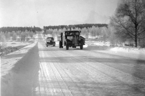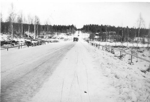 Bilden tagen vid grinden hos Borins i Svedja med dåtidens stora lönnar. Bygdegården skymtar i bakgrunden. (Kommentar: Varmsätra = en liten ort sydost Sala i Västmanland!
