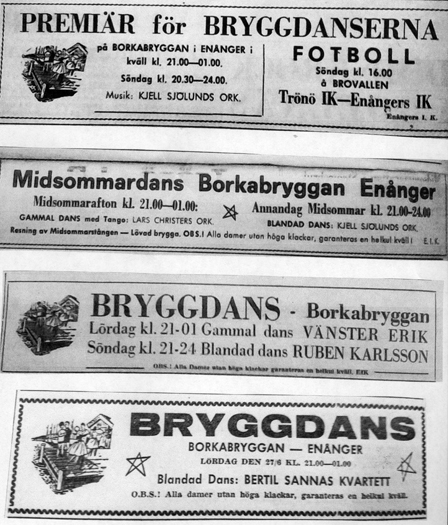 Bildtext: Erik Vilhelm Bergman f 1882 från Borka, fiskare på Agön då man rodde o seglade båtarna. Flyttade till Borkbo 1923 i och med att en sjöbod på Agön revs och flyttades till Borkbo. Sonen Oskar Bergman f 1917 och hustrun Vanda f Andersson 1919 tog över fisket. De fiskade strömming tiden 1940-1960-talen som förädlades, bl.a. lökströmming enligt bild. Rökeri byggdes även, röker "prima böckling". Inläggning och paketering skedde i villan i Borka. Anna Svedin jobbade också där. Produkterna skickades via järnväg, och mycket gick till Dalarna. Oskar slutade fiska 1964 men fortsatte några år till med förädlingen, köpte då strömming av Gävle fisk. Burkarna köptes genom handlare Franck, en gång köptes en hel järnvägsvagn med burkar för två öre st. Idag, år 2019, äger sonen Åke (f 1951) sjöboden på Borkbo. Numera ombyggt. Fiskekuttern finns kvar, en Erik Bergkvist båt