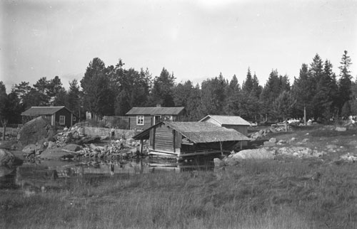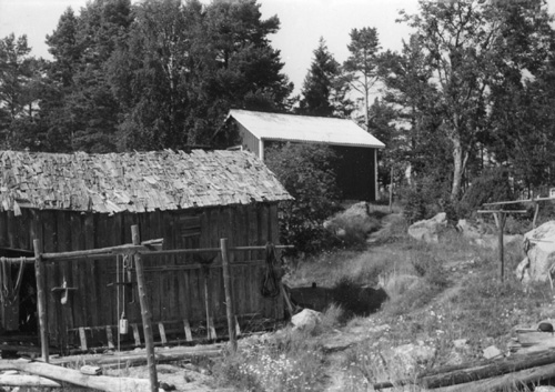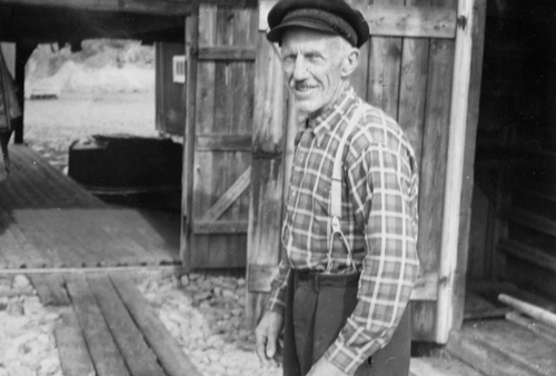 Bildtext: Gruppbild från Karskärs fiskeläge i samband med ekumenisk prästhelg (även kallat kyrksöndag). Initiativtagare var mannen i mitten, något till vänster med slips, läraren och riksdagsmannen Olle Westberg. Människorna på bild kom (i regel med båt) från såväl Enånger som från fiskelägen i området som t.ex. från Rävelsön, Bergön, Våtnäs, Vitön, Sörön, Gillingsön m.m. Inkommen bildsynpunkt: Olle var under en tid bosatt i Finnika men flyttade sen till Ljusdal.Där kom han också att arbeta som rektor.