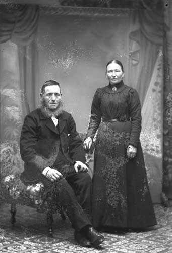 Bildtext: Anders Ersa och Britta Holmin, Hålsänge. Anders Ersson-Holmin född i Hålsänge 1845, ende sonen till bonden på Hålsänge 1, Erik Andersson f 1811 och hans hustru Margreta Sundström f 1813.