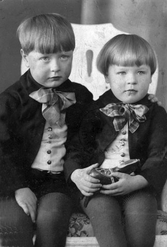 Bildtext: Björka skola i Söderrå.Bland eleverna ses,längst bak till höger; Elsie Larsson(f. 1929)(g.Bäcklund), näst längs bak, nr1; Edith Larsson(f.1926)(g.Bergman) och tredje raden längst bakifrån, nr1; Gunhild Larsson(f.1928)(g. Flodman), allla dessa var systrar.