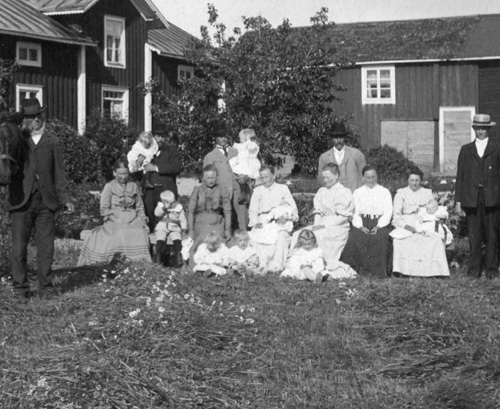 Bildtext: Från vänster; Jonas Frisk(18/12 1856-25/1 1942), August Frisk(3/7 1881-6/2 1931), Kristina Frisk(6/5 1877-3/8 1957)(f. Svedlund), Naemi Frisk(16/1-1916 )(g. Bostedt), Ida Rehnström(16/9 1902-23/3 1990). Bilden från "Petters" i Trogsta Forsa, dit August med familj flyttade 1918. 1920 flyttade de tillbaka till Vedmora Enånger. Pappa till Naemi är Einar Frisk som sedan blev byggmästare i Hudiksvall. Huset finns kvar och bebos av Göran Reimner med familj.