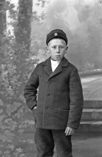 Bildtext: P-O Brolin med sina barn, Albert, Arvid, Per-Erik, Axel, Hilda, Kristin, Anna. Inkommen bildsynpunkt ger följande komplettering: Per-Olof Brolin, fiskare i Hålsänge. Född 1867, son till Per Brolin i Haga. Gift 1890 med Karin f Wiklund 1868 i Ö.Finnika. P-O här med sina barn. Pojkarna fr v. Albert f 1899,fiskare i Hålsänge, gift med Anna f Lindfors 1898, Nyåker. Arvid f 1906, fiskare och kommunalman i Rössånger, gift med Matilda f Edlund 1902, Borka. Per-Erik f 1908, fiskare i Fläcka, gift med Helga f Fernlund 1909, Ö.Finnika. Per-Erik dog redan 1948. Axel f 1897, fiskare och båtbyggare i Fläcka, gift med Linnea f Fernlund 1907, Ö.Finnika. Döttrarna från vänster. Hilda f 1902,bagerska, flyttade till Njutånger. Kristina, f 16/9 1891, gift med Karl Broberg, f 1899 fiskare i Finnika. Anna f 16/9 1891, gift med Erik Henning Nordin f 1891 bonde och fiskare Finnika och Hålsänge. (se Enånger karv-147 och en-r-15 och MAR-A-102)